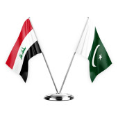 Iraq and Pakistan Flags Crossed And Waving Flat Style. Official Proportion. Correct Colors.