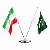 Iran and Pakistan Flags Crossed And Waving Flat Style. Official Proportion. Correct Colors.