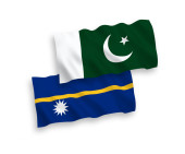 Nauru and Pakistan Flags Crossed And Waving Flat Style. Official Proportion. Correct Colors.