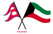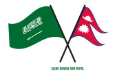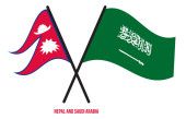 Nepal and Pakistan Flags Crossed And Waving Flat Style. Official Proportion. Correct Colors.