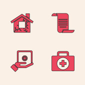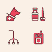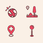 Set Joint pain knee pain Location hospital Digital thermometer and Hospital building icon. Vector.