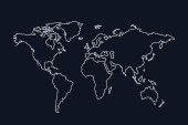 Modern Light Blue Color High Detailed Border Map Of World Isolated on Blue Background Vector