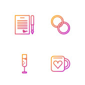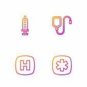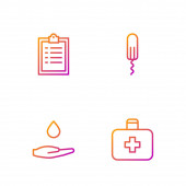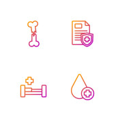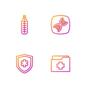 Set line Patient record Medical protective mask Hospital building and Crutch crutches. Gradient color icons. Vector.