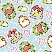 Zdjęcie "Pastel color.Cooking concept.Seamless repeat pattern of cute white bear.Animal cartoon character design.Image for card,wallpaper,sticker,background,baby product.Vector.Illustration." może być wykorzystywane do celów osobistych i komercyjnych zgodnie z warunkami zakupionej licencji Royalty-free. Obraz jest dostępny do pobrania w jakości wysokiej rozdzielczości do 5760x3840.