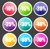40 procent zniżki znak ikona. Sprzedaż symbol. Oferta Specjalna etykiety. Zestaw kolorowych przycisków wektor