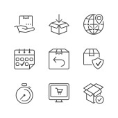 Zdjęcie "Ikony wysyłek i wektorów dostaw izolowane na białym tle. Ekspresowe dostawy i globalne ikony logistyczne dla sieci web, aplikacje mobilne i ui design" może być wykorzystywane do celów osobistych i komercyjnych zgodnie z warunkami zakupionej licencji Royalty-free. Obraz jest dostępny do pobrania w jakości wysokiej rozdzielczości do 5760x3840.
