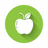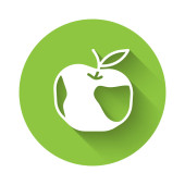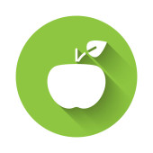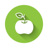 Zdjęcie "Biały owoc brzoskwiniowy lub nektaryna z ikoną liści izolowane z długim tle cienia. Zielony przycisk koła. Wektor." może być wykorzystywane do celów osobistych i komercyjnych zgodnie z warunkami zakupionej licencji Royalty-free. Obraz jest dostępny do pobrania w jakości wysokiej rozdzielczości do 5760x3840.