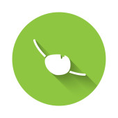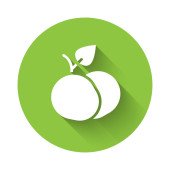 Biały owoc brzoskwiniowy lub nektaryna z ikoną liści izolowane z długim tle cienia. Zielony przycisk koła. Wektor.