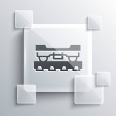 Szara antyczna ikona skrzyni skarbów odizolowana na szarym tle. Drewniana skrzynia ze złotą monetą. Szklane panele. Wektor.