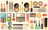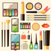 Mini zestaw płaskich ilustracji kosmetyków do twarzy. Makijaż wektorowy.