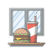 Ilustracja kreskówki Kanapka i napoje bezalkoholowe Izolowany wektor - Żywność i napoje Ilustracja Styl kreskówki.