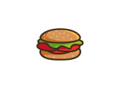 Burger Vector Cartoon izolowane - Żywność i napoje Ilustracja Styl kreskówki.