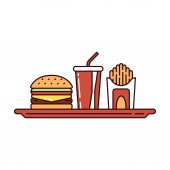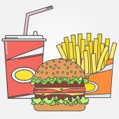 Ilustracja Burger i frytki z Soft Drink Menu, Wektor Cartoon Izolowane - Żywność i napoje Ilustracja Styl kreskówki.