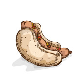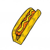 Ilustracja Hot Dog i torba papieru Take Away Menu, Cartoon Isolated - Żywność i napoje Wektor Projekt ilustracji.