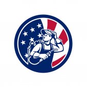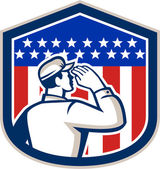 Amerykański patriota gospodarstwa Brandish flaga Tarcza Retro