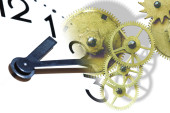 antyczny zegar z cracka na twarzy, na tle narzędzi