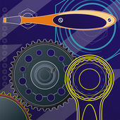 antyczny zegar z cracka na twarzy, na tle narzędzi