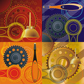 antyczny zegar z cracka na twarzy, na tle narzędzi