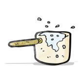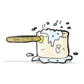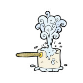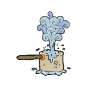cacerola de cocina burbujeante de dibujos animados