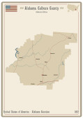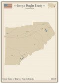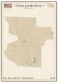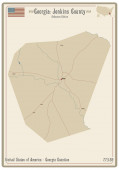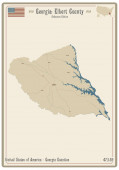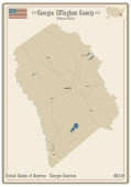 Mapa na starej wizytówce hrabstwa Emanuel w Gruzji, USA.
