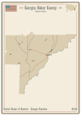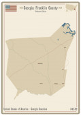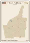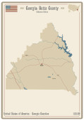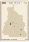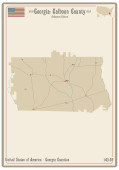 Mapa na starej wizytówce hrabstwa Forsyth w Gruzji, USA.