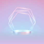 Zdjęcie "Pusty Cylinder Podium z abstrakcyjnym jasnym trójkątnym neonowym tłem ramki. Vector clip art do projektu sprzedaży w stylu retro." może być wykorzystywane do celów osobistych i komercyjnych zgodnie z warunkami zakupionej licencji Royalty-free. Obraz jest dostępny do pobrania w jakości wysokiej rozdzielczości do 5760x3840.
