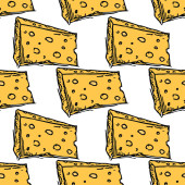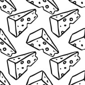 bezszwowy wzór sera. Wzór wektora bazgrołów z ikonami sera. Kolorowe tło sera