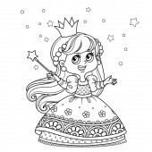 Cute cartoon little fairy rzucone zaklęcia z magiczną różdżką odmiany kolorów do kolorowania na białym tle