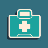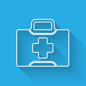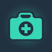 Zdjęcie "Biała linia Ikona apteczki odizolowana długim tle cienia. Skrzynka medyczna z krzyżem. Sprzęt medyczny na wszelki wypadek. Koncepcja opieki zdrowotnej. Zielony przycisk koła. Wektor." może być wykorzystywane do celów osobistych i komercyjnych zgodnie z warunkami zakupionej licencji Royalty-free. Obraz jest dostępny do pobrania w jakości wysokiej rozdzielczości do 5760x3840.