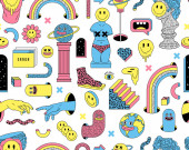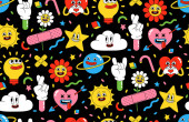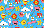 Zdjęcie "Wektor kreskówek zabawne słodkie postacie komiczne, bezproblemowy wzór. Crazy kreskówek Streszczenie wektor kolekcji w modnym stylu retro komiksu" może być wykorzystywane do celów osobistych i komercyjnych zgodnie z warunkami zakupionej licencji Royalty-free. Obraz jest dostępny do pobrania w jakości wysokiej rozdzielczości do 5760x3840.