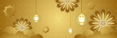 Islamski ramadan kareem sztandar tło z wzorem półksiężyca księżyc gwiazda meczet latarnia. Ilustracja wektora. Ramadhan żółty złoty kolorowy szeroki baner projekt tło