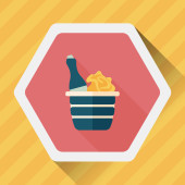 Walentynki szampana płaski ikona z długim cieniem, eps10