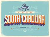 Pozdrowienia z Południowej Karoliny vintage zardzewiały metalowy znak wektor ilustracji. Mapa stanu wektorowego w stylu grunge z ręcznie rysowanymi literami typograficznymi