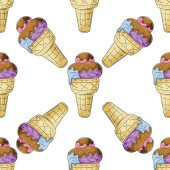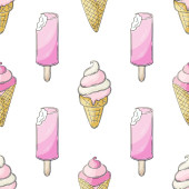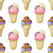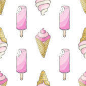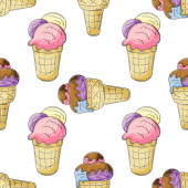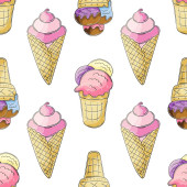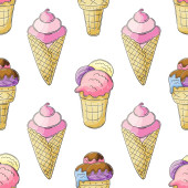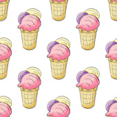 Słodkie lody w wafli stożki bezszwowy wzór. Wspaniały wzór z zimnym deserem. Latem. Druk na wzór tkaniny, tkaniny