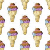 Zdjęcie "Słodkie lody w wafli stożki bezszwowy wzór. Wspaniały wzór z zimnym deserem. Latem. Druk na wzór tkaniny, tkaniny" może być wykorzystywane do celów osobistych i komercyjnych zgodnie z warunkami zakupionej licencji Royalty-free. Obraz jest dostępny do pobrania w jakości wysokiej rozdzielczości do 5760x3840.
