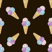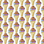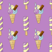 Słodkie lody w wafli stożki bezszwowy wzór. Wspaniały wzór z zimnym deserem. Latem. Drukuj do tkanin, tkanin, tkanin, tapet, owijania