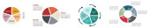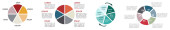Koło podzielone na cztery równe części, różne wersje - element infografiki