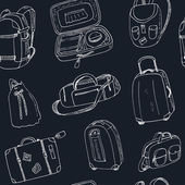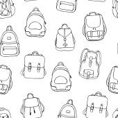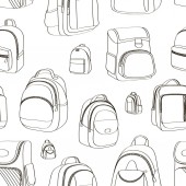 Płynny wzór plecaków z bazgrołami. Ręcznie rysowany plecak bezszwowy wzór. Projektowanie wzorców kempingu