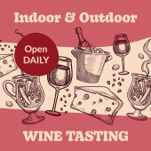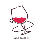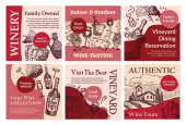 Łatwa rezerwacja online dla autentycznych wycieczek wina. Włoska wieś z polami winogron i winnic. Wycieczka ukazująca specyfikę procesu produkcji napojów alkoholowych. Wektor w płaskim stylu