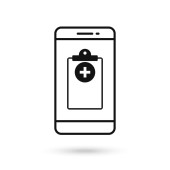 Ikona projektowania telefonu komórkowego z symbolem raportu medycznego