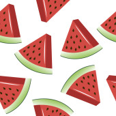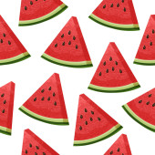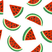 Plasterek arbuza z nasionami bezszwowy wzór w stylu kreskówki. Arbuz w tle owoców. Tropikalny owoc. Egzotyczne. Soczyste