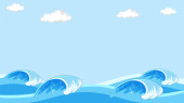 Isolated ocean waves in cartoon style illustration