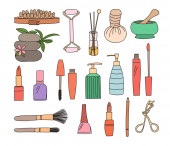 Spa i piękno przedmiotów bazgroły ilustracje kolekcji wektor. Spa i piękno przedmioty ręcznie rysowane ilustracje kolekcja wektor.