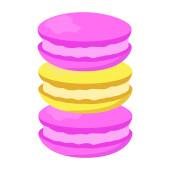 makaroniki Wektor płaska ilustracja, ikona tort, słodycz. Odizolowane makaroniki na białym tle