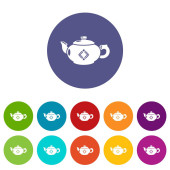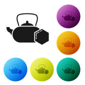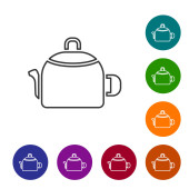 Black line Traditional tea ceremony icon isolated on white background. Teapot with cup. Set icons colorful circle buttons. Vector.