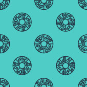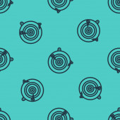 Czarna linia Ikona dysku winylowego odizolowany bezszwowy wzór na zielonym tle. Wektor.
