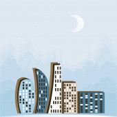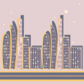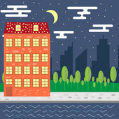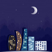 Noc gród - streszczenie budynków - wektor ilustracja koncepcja w stylu Płaska konstrukcja. Nieruchomości mieszkanie ilustracja. Archit ecture megalopolis. Gród ciemne tło. Elementy projektu.