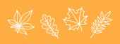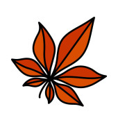 white chestnut leaf, orange background, simple vector illustration, autumn season symbol
