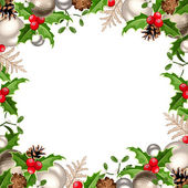 Kartki świąteczne z oddziałów jodła, holly, Poinsecja i szyszki. Wektor eps-10.