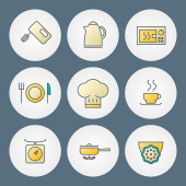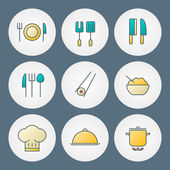 Ikony żywności i restauracji. Wektor zestaw w płaski projekt styl ikon. Do projektowania witryn sieci web i aplikacji mobilnych